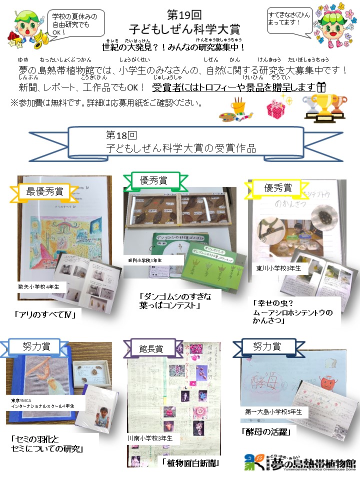 都内に住むこども達に自然とのふれあいを持ってもらうため、自然調査や体験などをテーマに作品を募集します。