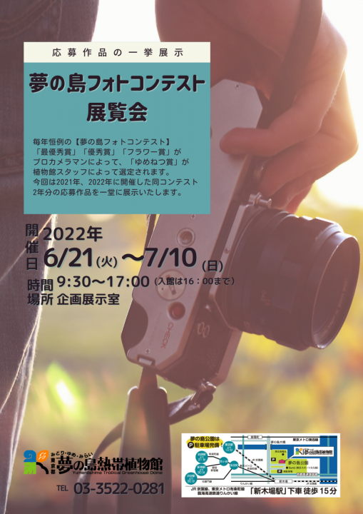 2022年06月21日(火)〜2022年07月10日(日)開催 終 了 夢の島フォトコンテスト展覧会 フォトコンテストにご応募いただいた全作品の2年分を一堂に展示します。 素敵な夢の島の作品をお楽しみください。 ※表示写真は2021年度の最優秀賞作品です。