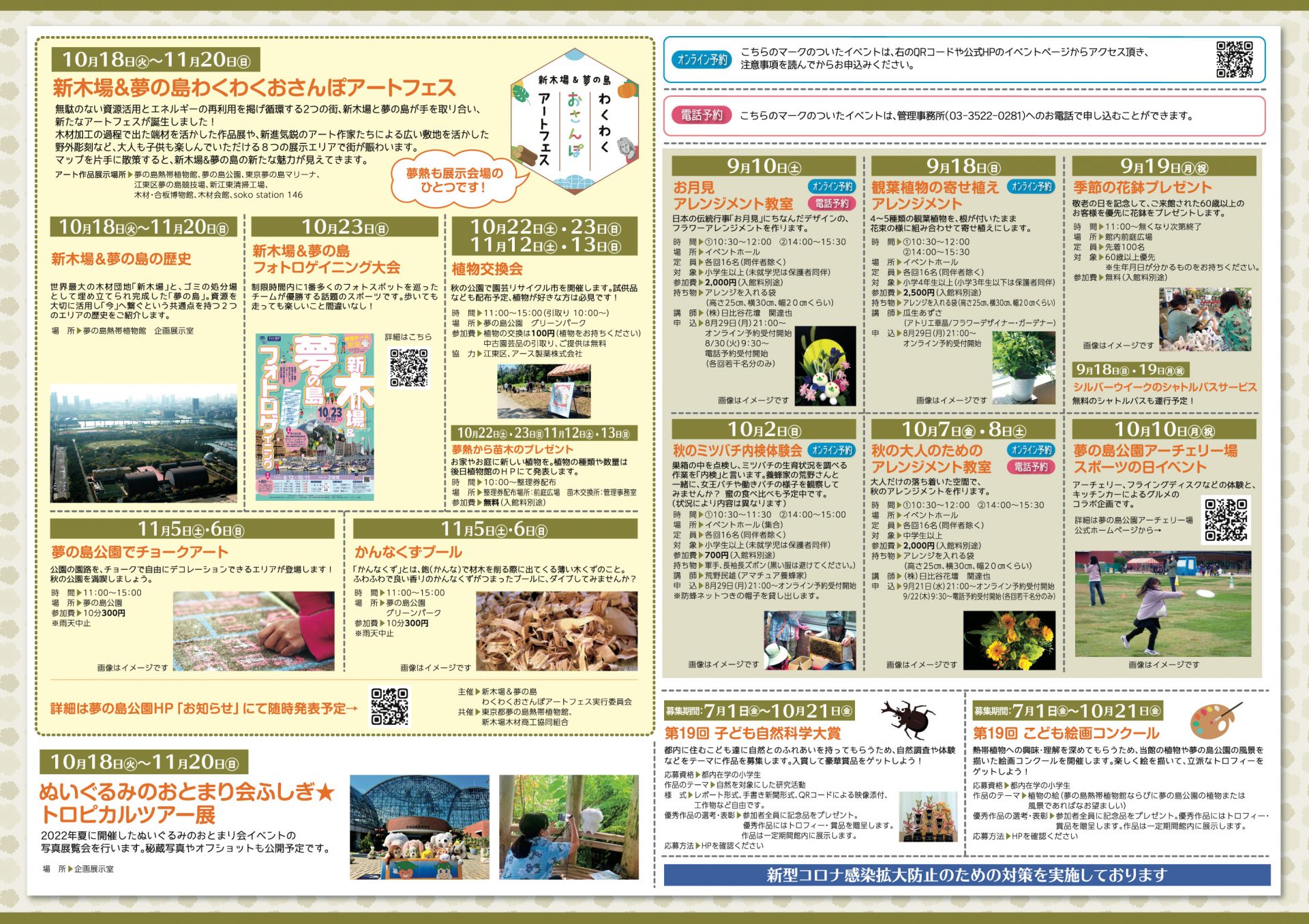 毎年恒例のおばけカボチャの展示やミツバチ内検体験会、そして新たなお祭り「新木場&夢の島わくわくおさんぽアートフェス」など、今年の秋も楽しいイベントが盛りだくさんです。