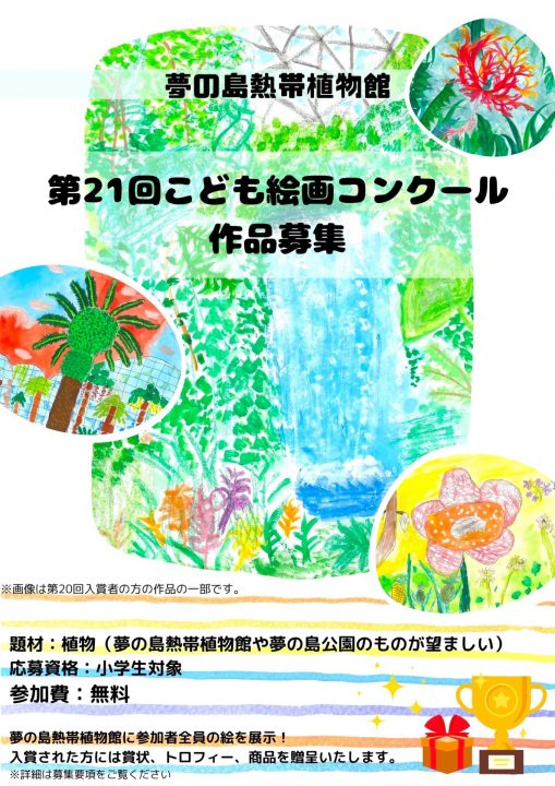 熱帯植物への興味と感心を深めてもらうため、ゆめねつの植物や夢の島公園の風景を描いた絵画コンクールを開催します。