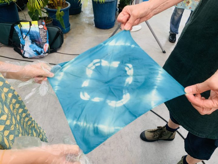 Nur beim Färben mit rohem Indigo können Sie zusehen, wie sich Ihr Taschentuch von Grün zu Indigo verfärbt!