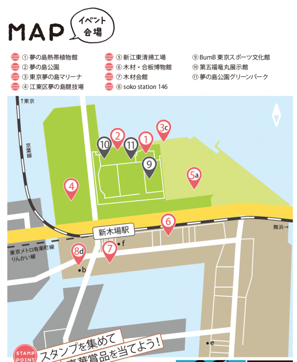 Wenn Sie mit einer Karte in der Hand spazieren gehen, werden Sie neue Reize von Shinkiba und Yumenoshima sehen.