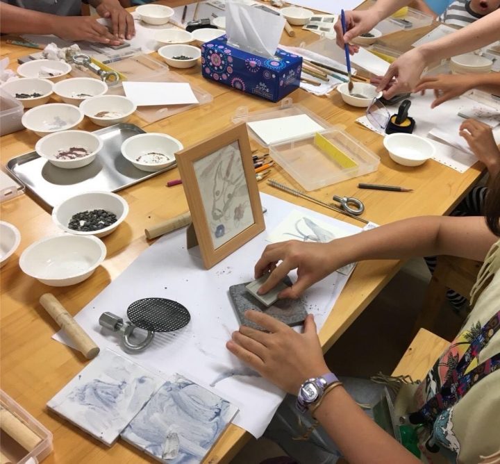 In diesem Workshop werden wir einen speziellen Bausatz verwenden, um natürliche Farben herzustellen, wobei wir Yumenoshimas Erde, Kieselsteine und Zweige als Materialien verwenden. Lasst uns mit den von uns hergestellten Farben Bilder auf Postkarten zeichnen und daraus Kunstwerke machen!