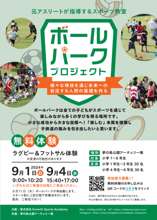 September 1st (Sun) and September 4th (Wed) Ballpark (Rugby, Futsal, Handball) Trial Session