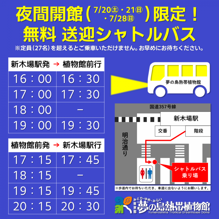 Also, for these three days only, a free shuttle bus will be operating directly from Shin-Kiba Station to the botanical gardens!