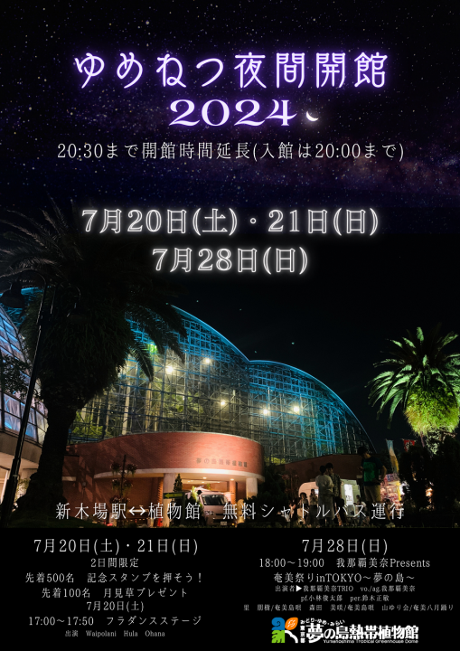 Night opening hours will be held on July 20th (Sat), 21st (Sun), and 28th (Sun)!