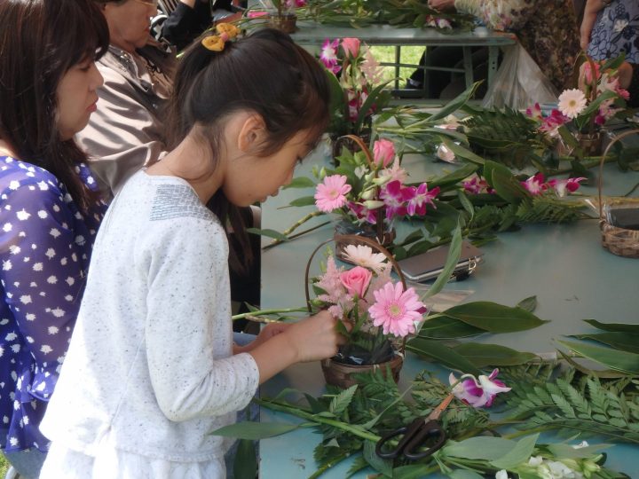 꽃을 통해 세계의 아이들의 생활 환경의 개선과 사회 복지에 공헌하는 「(재) 국제 어린이 꽃 기금」에 의한 꽃꽂이 교실입니다. 어린이도 쉽게 배열을 만들 수 있습니다.