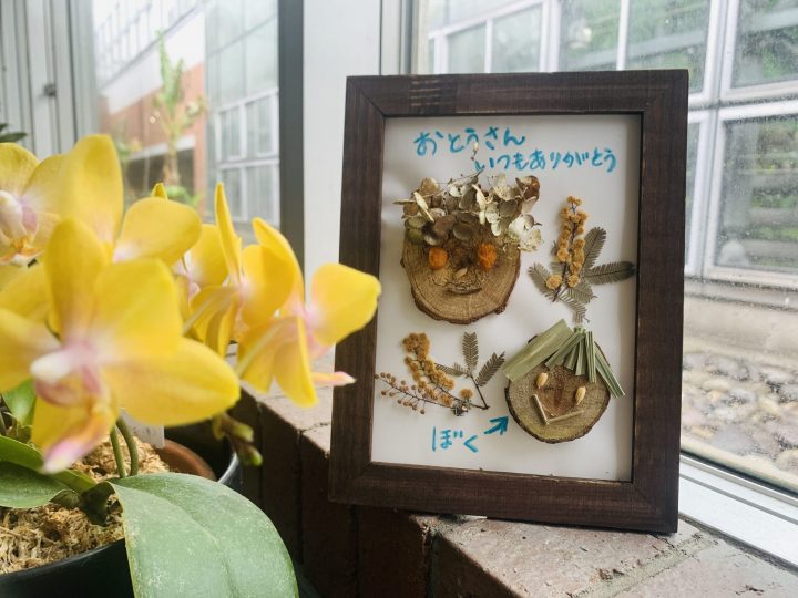 나무와 말린 꽃, 잎을 사용하여 "아빠의 얼굴"을 만들어 봅시다! 소재의 파트를 몇 개 준비해 두므로, 나무나 드라이 소재와 접촉하면서, 재료를 즐겁게 선택할 수 있습니다.