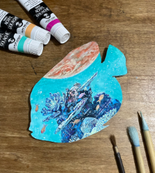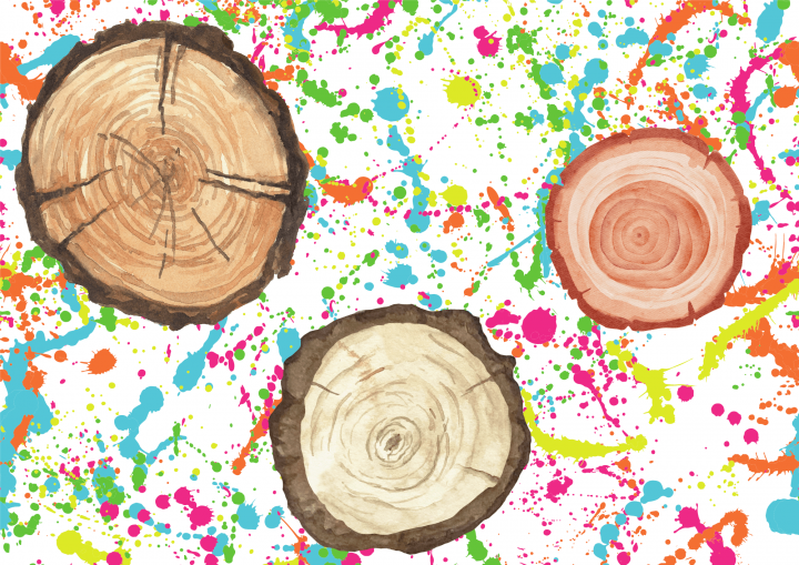 통나무재(직경 15cm 정도)에 아크릴 페인트로 '나무'의 아트를 그린다. 작업 시간은 약 1시간 정도. 완성품은 가지고 돌아가.